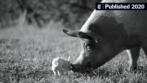 Tài liệu xem xét cuộc sống hàng ngày của một con lợn và những người bạn đồng hành trang trại của nó: Hai con bò và một con gà một chân.